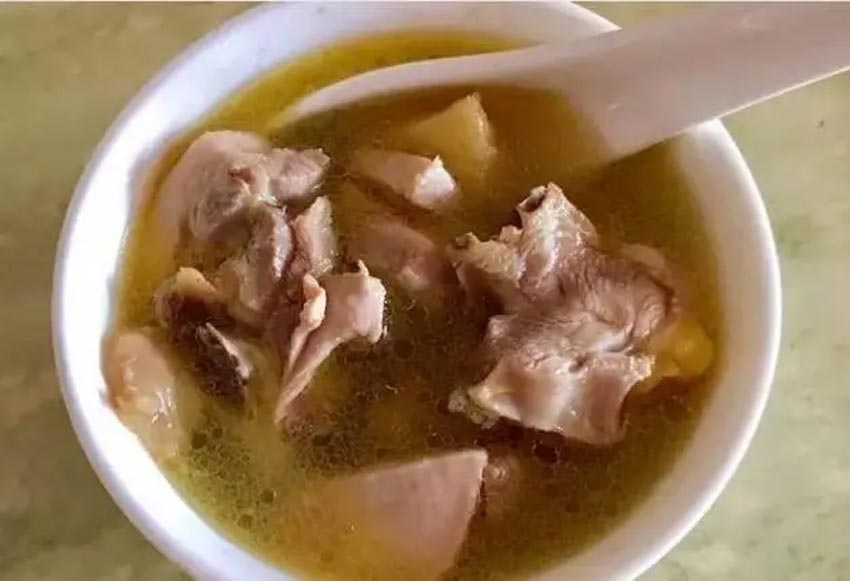 风姜鸡,以阳春合水最为出名。这份最具阳春特色的冬季滋补圣品,绵延至今已有几百年的历史。此汤做法相对简单,先选用三年以上的老风姜洗净,用刀面拍爆,放锅里冷水没过,开火至水沸腾,捞出放冷水泡浸12小时,期间需换水三次,然后用大陶瓷煲连同猪筒骨一起满水熬制8小时以上,武火三小时,文火5小时,汤底熬完后,选用2年以上老母鸡斩件放入文火再熬40分钟,即可,喝汤吃肉,大乐事也,现在也有店家用熬好的底汤做火锅底汤,涮以其他食材,功效稍逊,但口感更为丰富。相较普通生姜,风姜更辛辣霸气能直透人体各个关节,把人体的邪气、湿气逼出来,女性身体虚寒,尤为适宜,冬季常饮此汤,可保手足熙暖。